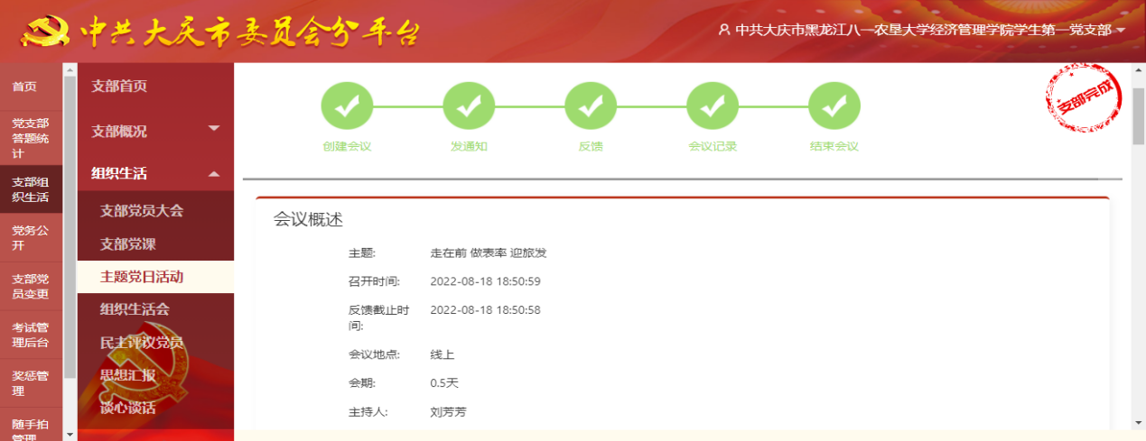 近日,为迎接省第五届旅发大会在大庆市召开,yl6809永利官网学生第一党支部通过龙江先锋党建平台将主题党日活动搬上云端,采用线上开会和线下实践相结合的方式助力省旅发大会。