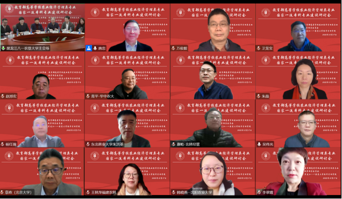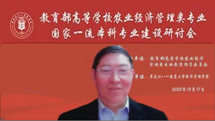 为交流农经专业类国家级一流本科专业建设经验,推进一流专业建设,提高人才培养质量,更好地为实施国家乡村振兴战略培养“懂农业、爱农村、爱农民”的拔尖创新人才,12月17日,由教育部高等学校农业经济管理类专业教学指导委员会(简称农经教指委)主办,我校yl6809永利官网承办的“农业经济管理类专业国家级一流本科专业建设第二次研讨会”以在线视频会议的方式举行,我校党委书记董广芝教授,农业经济管理类专业教指委全体委员、全国高校农业经济管理领域的专业教师代表120多人与会。会议主要围绕当前“新文科”与“新农科”交叉融合的农业经济管理类本科专业建设问题,聚焦林业院校和东北地区高校一流本科专业建设点展开研讨,为高端农经人才培养贡献智慧。