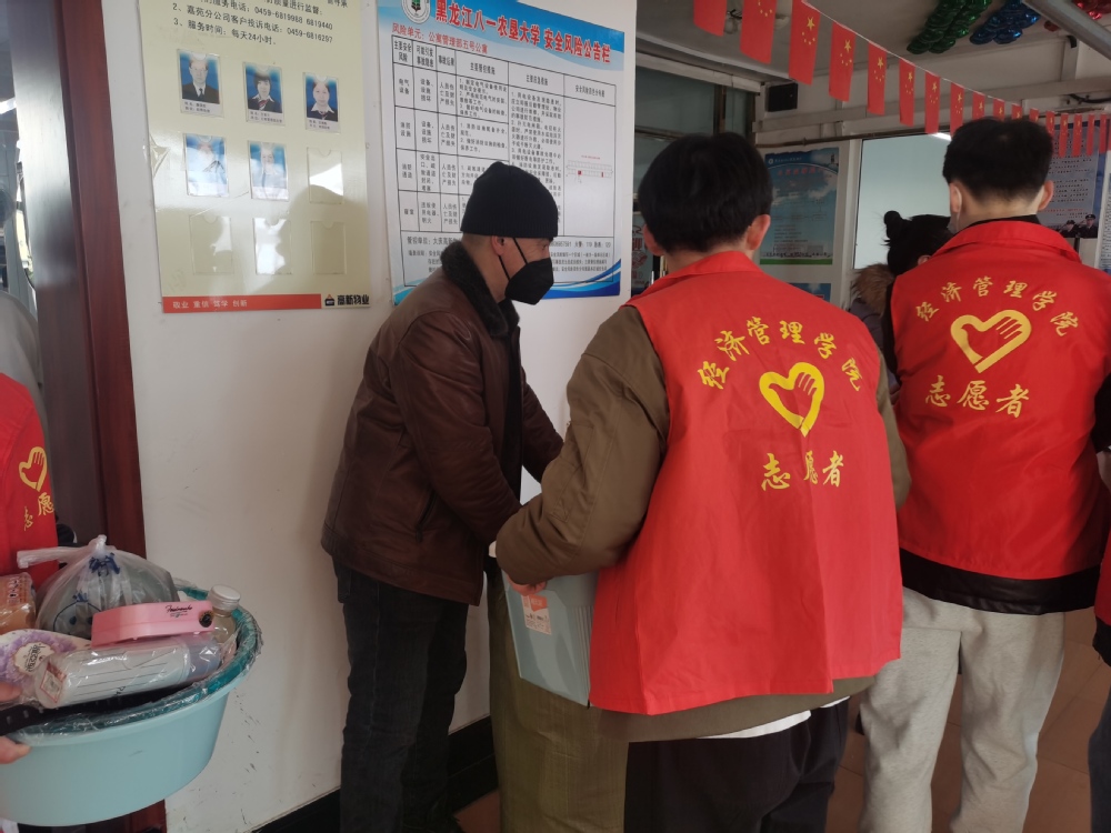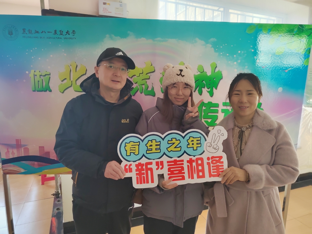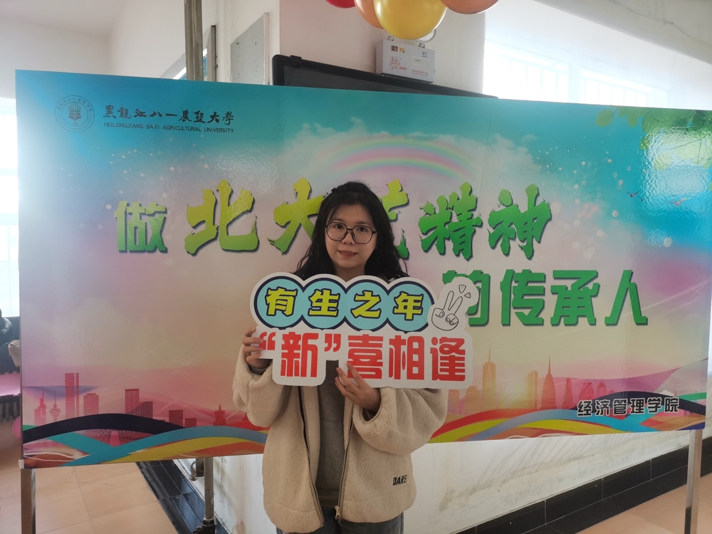 为了给新生留下关于大学的美好初印象,学院提前对公寓楼进行布置,五颜六色的气球,营造出温馨而热烈的迎新气氛。学院设置了“做北大荒精神的传承人”签名留念墙,同学们留下签名以及对大学生活的美好期盼,对学院产生了强烈的归属感;制作了带有学院特色的异形卡,同学们手持异形卡与家长、老师、同学在签名留念墙前合影留念,元气满满地打卡入校第一天。