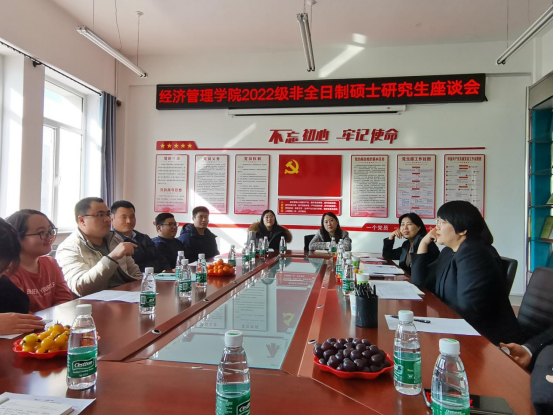 上午九点三十分,学院在339会议室召开了2022级非全日制学生座谈会,徐素波院长、韩光鹤副院长、耿晓媛副院长、孙玉忠副教授、辅导员刘绍芹以及陆生林等10位同学代表参加了会议。耿晓媛副院长代表学院欢迎各位同学的到来并向迈上了学业和人生新台阶的研究生新生们表示了衷心祝贺。徐院长希望同学们广开言路,发表工作及学习上的设想,将校园与社会连接起来,提升教学质量。10位同学依次进行了自我介绍,并针对学制、学科建设、专业建设、实践与理论相结合等进行了讨论,学生表示愿意搭建学校和其所在地区各单位的桥梁和纽带,共同促进校企合作,建设实习就业基地等。与会的领导和老师们也与学生进行了热烈的互动交流。