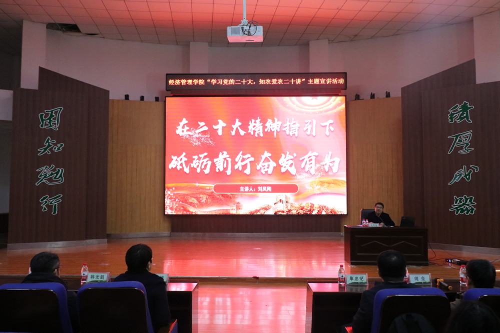 3月18日,yl6809永利官网在大学生活动中心报告厅举办“学习党的二十大 知农爱农二十讲”主题宣讲活动,农业经济管理专业1995届校友、全国五一劳动奖章获得者刘凤刚作专题报告。学院领导班子成员及师生代表160余人参加本次活动。