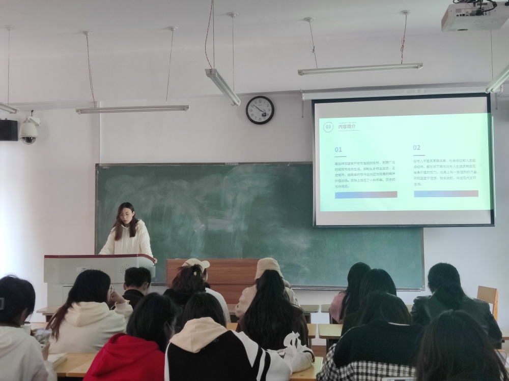 本期读书分享的书籍是路遥的《人生》。主持人介绍书籍梗概,同学们从书籍创作背景、内容情节出发,进行精彩片段品读和个人感悟分享。