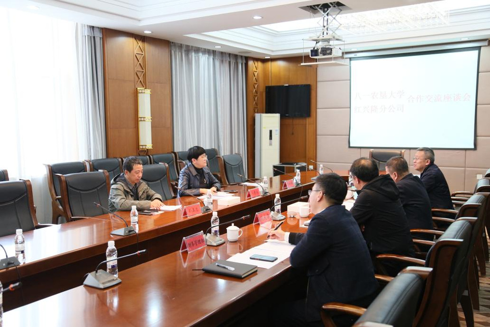在红兴隆管局,学院一行人员与分公司总经理蔡建华、副总经理魏庆安等公司高管人员进行了座谈交流。校企双方就科技研发合作、技术成果转化、学生实习实践、财务人员培训以及市场营销推广等方面的合作进行了深入交流,并初步达成了合作的框架协议。