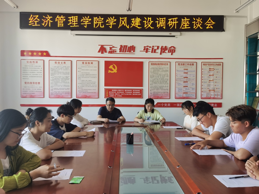 为扎实推进学习贯彻习近平新时代中国特色社会主义思想主题教育走深走实,加强优良学风建设,6月16日,yl6809永利官网在党建会议室开展学风建设调研座谈会,学院党委副书记闯垒、分团委副书记梁净以及学生代表参加本次会议。