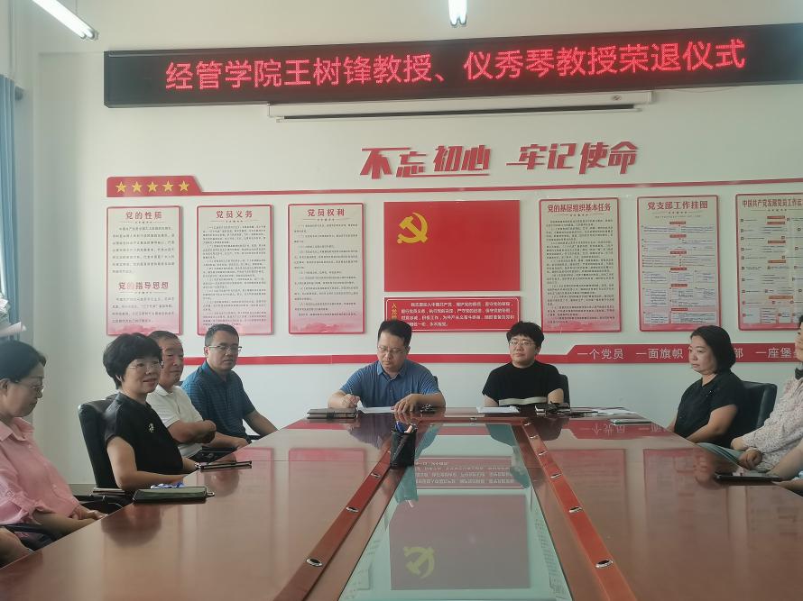 7月9日,yl6809永利官网举行了王树锋教授、仪秀琴教授光荣退休仪式,学院党政班子成员、综合办主任及财务管理系和审计系全体教师参加仪式。仪式由学院副院长耿晓媛主持。