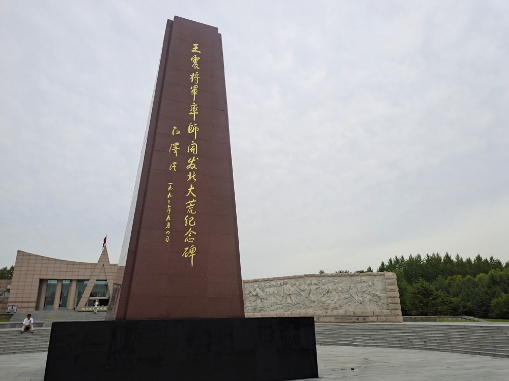 实践团队第三站来到了位于当壁镇的北大荒开发建设纪念馆,在王震将军雕像前,团队成员深刻缅怀王震将军开发建设北大荒的丰功伟绩,表达了对王震将军崇高的敬意。通过认真聆听讲解,团队成员深入了解从“北大荒”到“中华大粮仓”的艰辛耕耘历程,深刻感受北大荒现代化大农业的壮丽之美,对北大荒精神有了更加鲜明的认识。