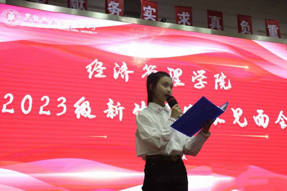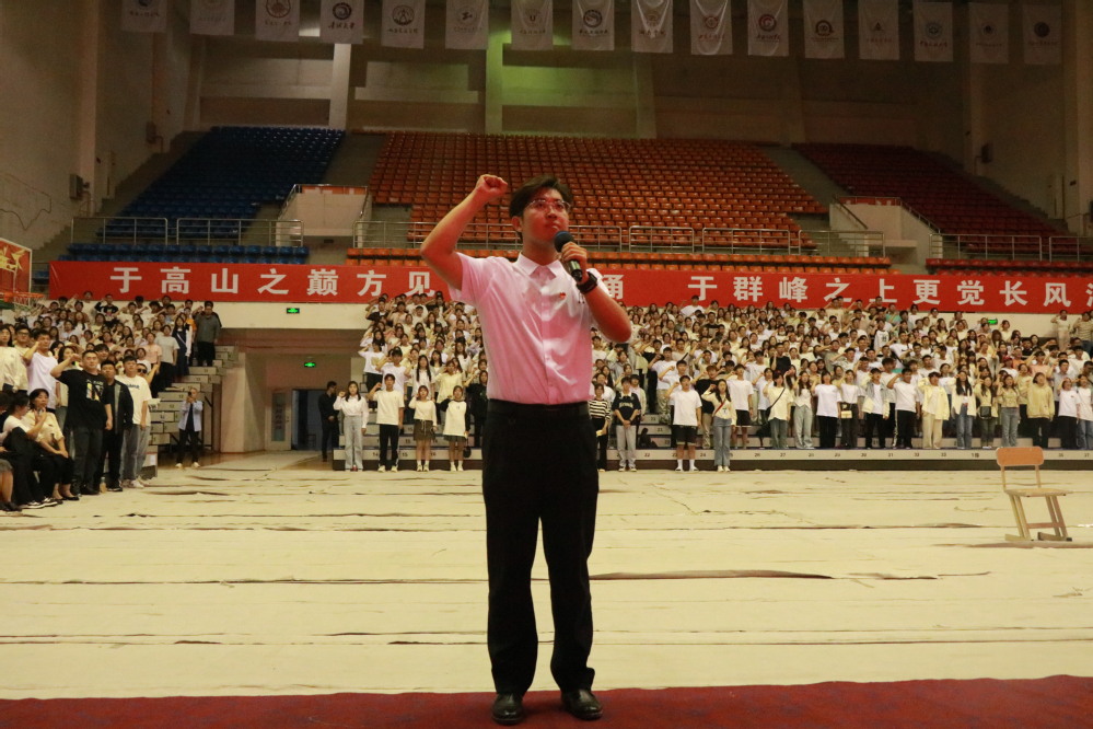 2023级辅导员包昌昊带领全体新生庄严宣誓:值我青春年华,融入美好农大;牢记父母嘱托,严守校规校纪;铭记青春使命,追求自信人生;困知勉行,积厚成器;今日,我是经管学子;明日,我是祖国栋梁。