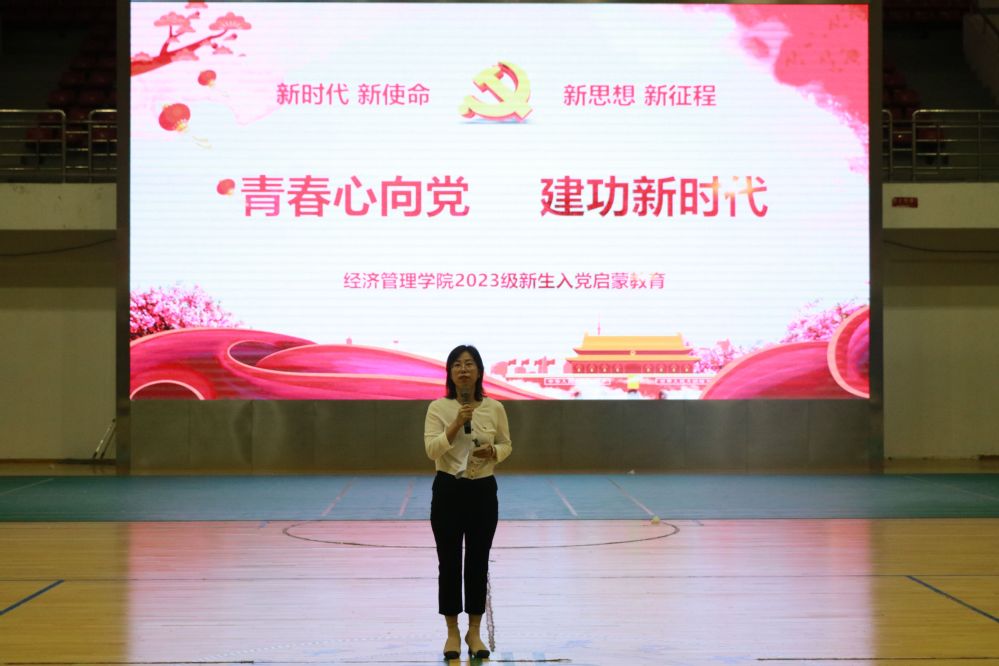 为引导青年学生坚定信念、紧跟党走,学院副处级组织员刘芳芳以“青春心向党,建功新时代”为题,围绕认识中国共产党、大学生为什么要入党、怎样加入中国共产党三个部分展开了详细的论述,为新生讲授了一节专题党课,勉励新生要勇于担当时代责任和历史使命。一场入党启蒙教育,为新生注入一剂初心热血,使新生增强了入党意愿,端正了入党动机。