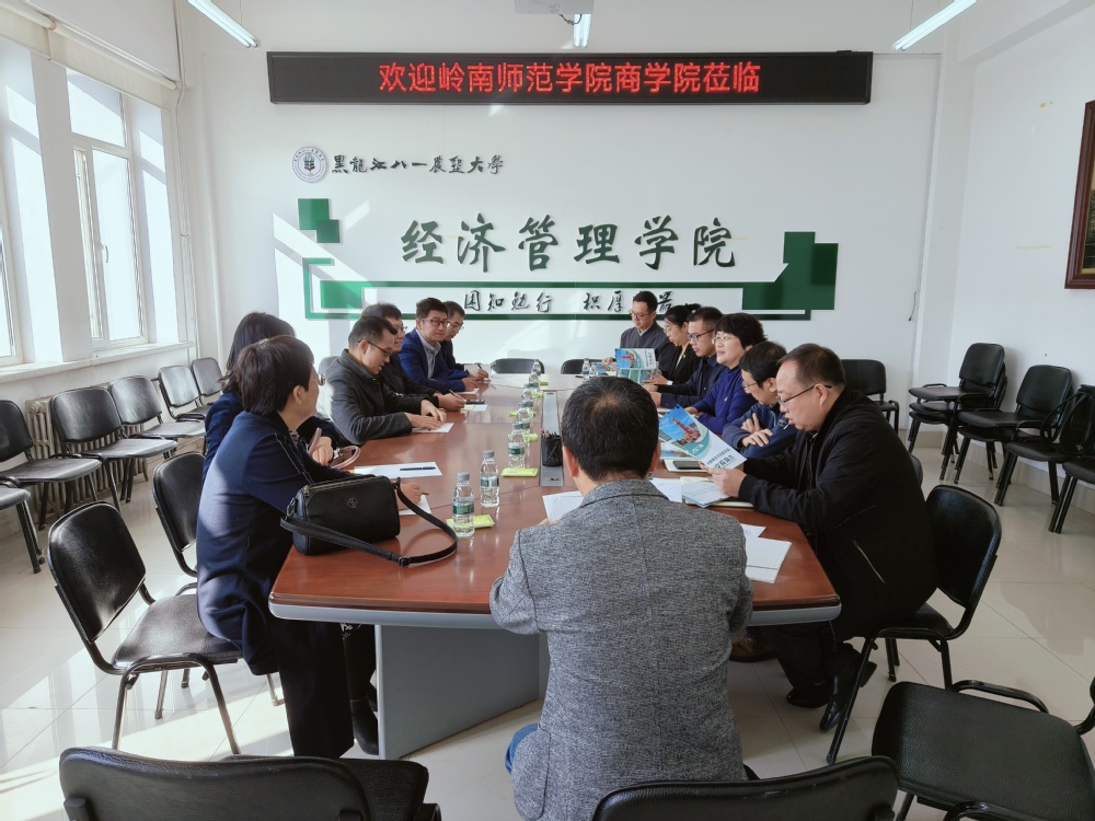 10月11日,岭南师范学院商学院院长许抄军,副院长刘海英、陈臻,相关专业负责人等一行6人到我院调研交流。我院院长徐素波、副院长韩光鹤,系主任及专业硕士负责人等出席了此次会议。