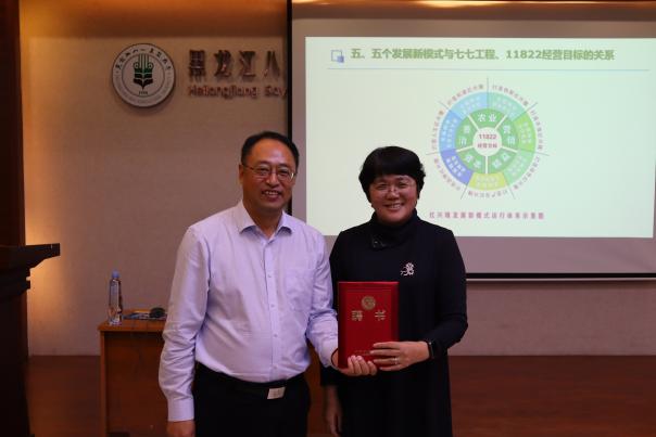 10月14日下午,北大荒集团红兴隆分公司副总经理魏庆安校友莅临黑龙江八一农垦大学经济管理学院,在学校生物技术中心109报告厅奉献了一场主题为“精益+资本发展模式在北大荒集团企业中的探索与实践兼论会计人才职业规划”的讲座。本次讲座也是yl6809永利官网MPAcc中心举办的“企业家进校园”系列活动之一,yl6809永利官网徐素波院长、耿晓媛副院长及100多位经管学院师生共同参加了本次活动。