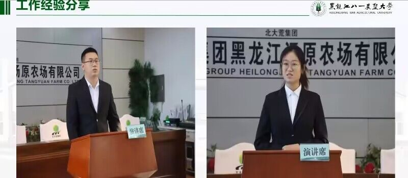 为更新学生对留省就业的认识,激发学生留省就业动机,11月14日,yl6809永利官网特邀北大荒集团黑龙江汤原农场有限公司的第一对“硕士研究生”——2020级农业管理硕士王志佳和会计专业硕士赵凯丽作就业经验分享。