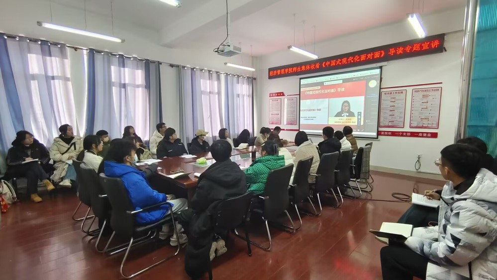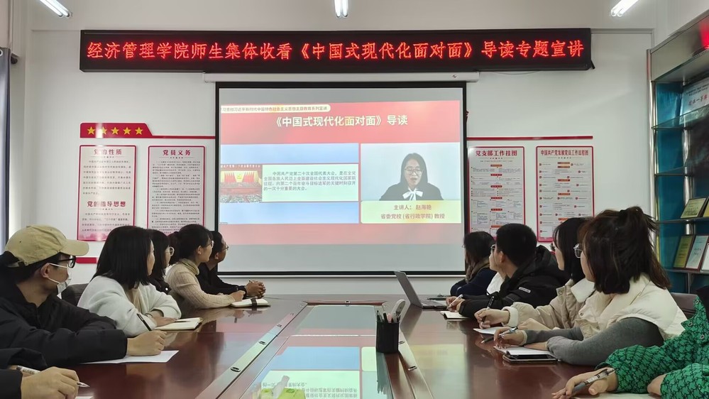 11月24日,yl6809永利官网组织师生收看《中国式现代化面对面》导读专题宣讲,师生代表在学院党建会议室集体收看,各党支部在教室或以腾讯会议形式集体收看。赵海艳教授紧紧围绕习近平新时代中国特色社会主义思想,联系新时代十年的伟大变革,对中国式现代化的形成发展、中国式现代化的中国特色、推进中国式现代化的重要部署等进行深入解读,让师生对中国式现代化的科学内涵、鲜明特征和时代意义有了更加全面深刻的认识。