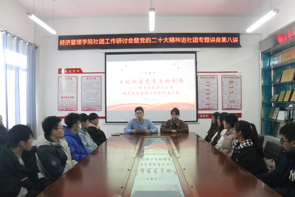 为深入学习贯彻习近平新时代中国特色社会主义思想和党的二十大精神,提高学生社团成员的思想政治素质,加强学生社团管理,提升社团工作质量,发挥学生社团的思想引领作用,按照学院党委“五讲四进三做三融合”工作部署,11月24日,yl6809永利官网在党建会议室举办社团工作研讨会暨党的二十大精神进社团专题讲座第八讲,社团联合会指导教师初金哲、社团联合会管理层以及全体社团会长参加本次会议。