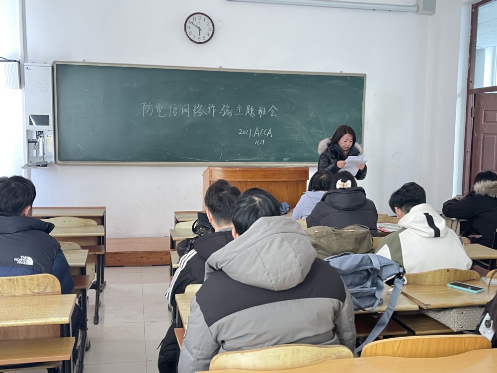 为增强学生防范电信网络诈骗意识,提高学生防范识别电信诈骗能力,遏制电信网络诈骗向校园渗透,保护学生人身和财产安全,维护校园安全稳定,11月24日至27日,yl6809永利官网组织全院69个班级开展防电信网络诈骗主题班会。