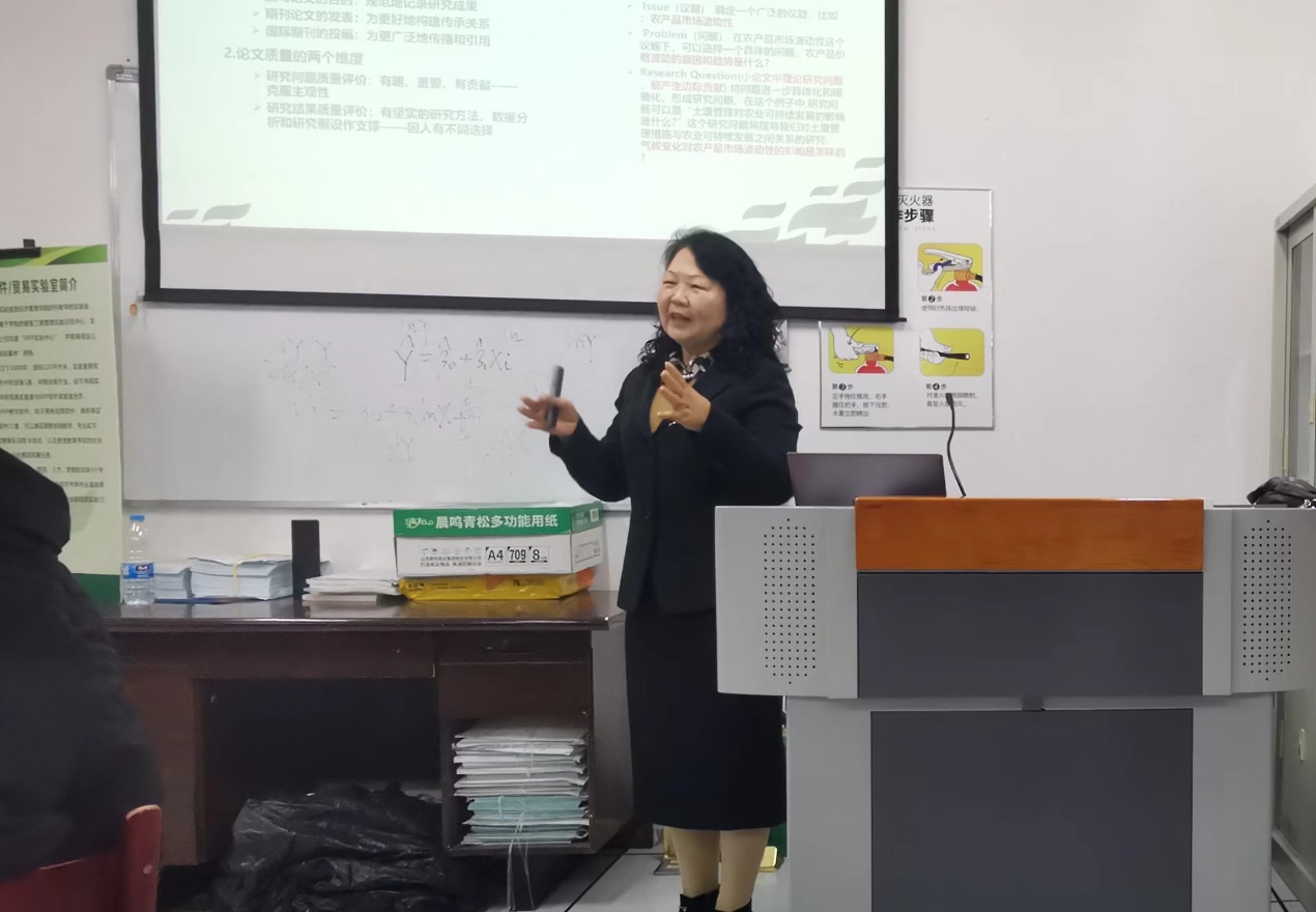 冷教授在讲座中强调了选题角度应该从原有的中国角度转变为全球角度,拥有更加广阔的全面视角,同时在选题方向上可以加强我校的特长,与农业相结合走出自己特色专业道路。在内容的处理上,应该在研究目的与意义、方法选取上都站在全面的大局观上进行思考。