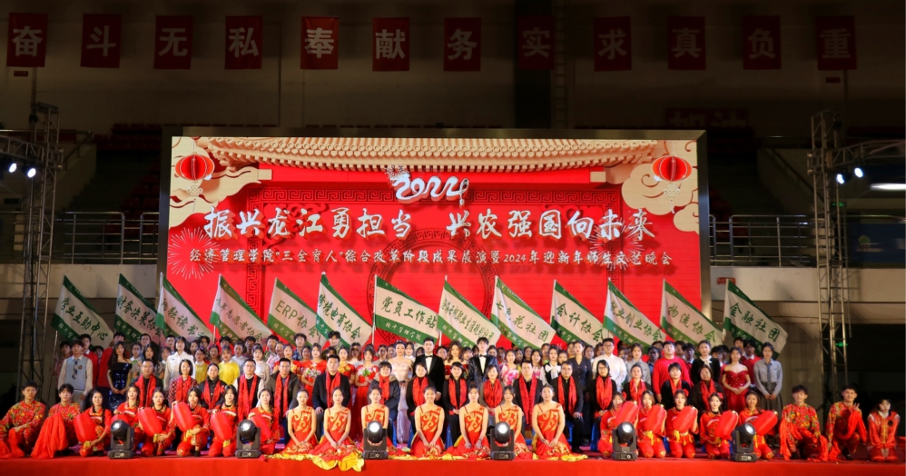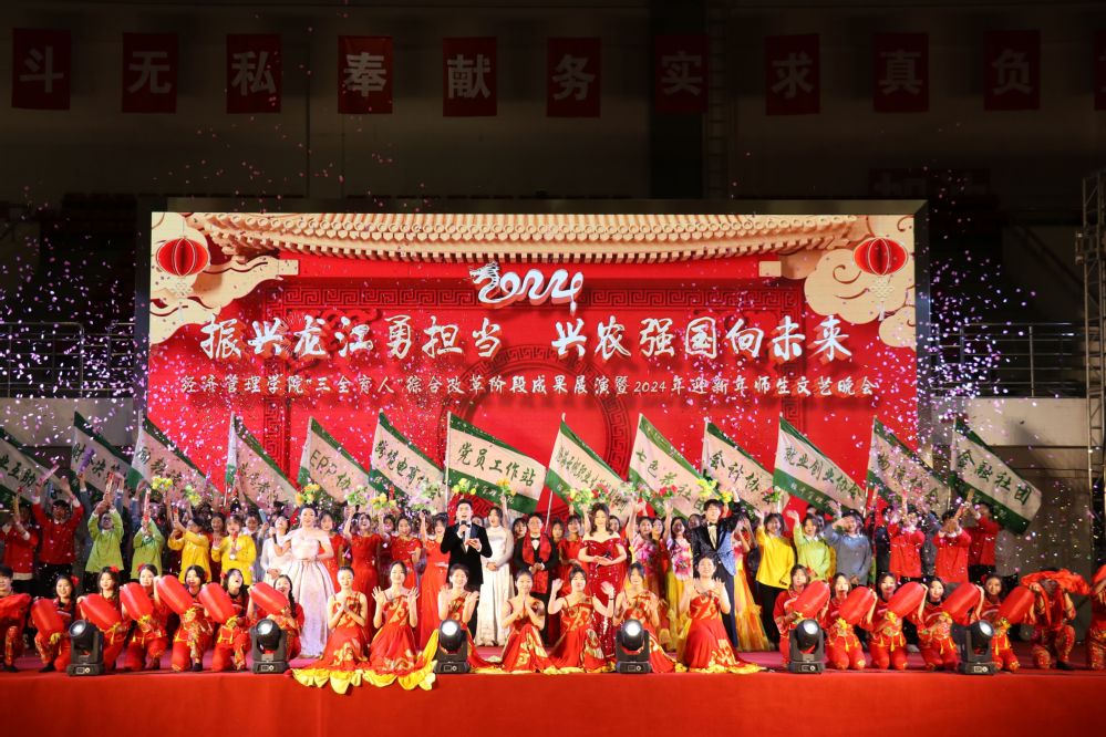 为展示“三全育人”综合改革新进展、新成效,交流分享好经验、好做法,激励师生凝心聚智推动学校学院高质量发展,12月17日晚,yl6809永利官网在体育馆举办“振兴龙江勇担当 兴农强国向未来”“三全育人”综合改革阶段成果展演暨2024年迎新年师生文艺晚会。校党委副书记高宏,部分机关职能处室领导,兄弟学院学工战线成员,校、各学院学生组织管理层以及学院师生代表等2000余人共同欣赏了这场精彩又温暖的视听盛宴。
