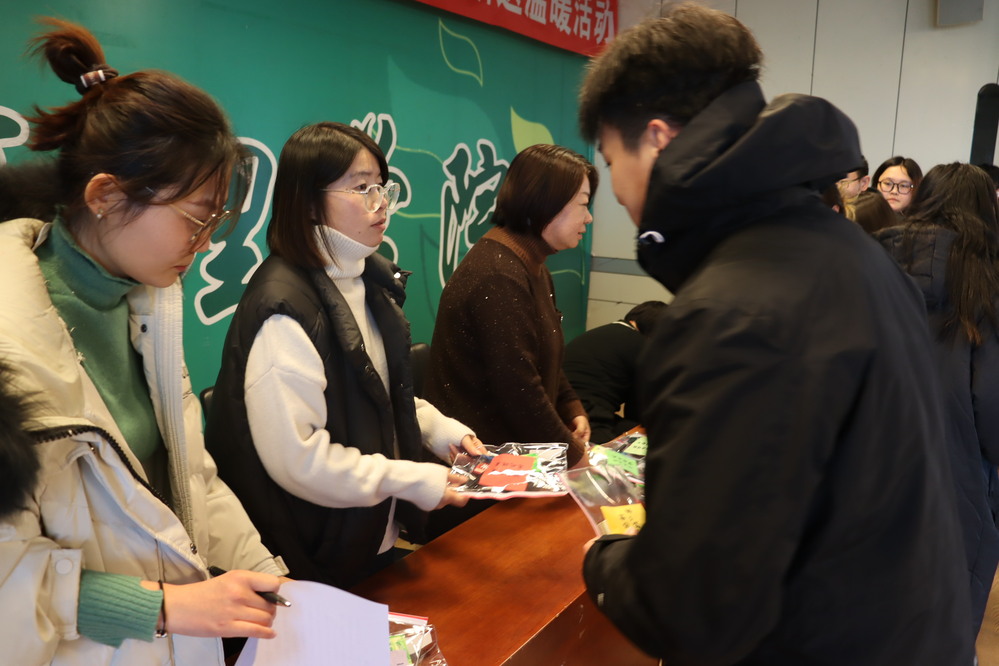 活动现场,学院领导和老师为考研学生发放了精心准备的“考研福袋”,文具寓意“文墨生花”,巧克力寓意“以‘力’破‘巧’”,手帕纸寓意“‘纸’定上岸”,每个福袋附带一张写着祝福语的彩色卡片,礼物虽轻,却传递着浓浓的人文关怀,希望考研学生带着满满的心意奋力冲刺、不留遗憾。
