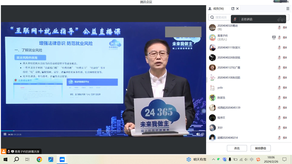 开展“增强法治意识,防范求职风险”主题活动,通过组织学生观看教育部“互联网+就业指导”公益直播课加强就业安全教育,引导学生增强自我保护意识,做好招聘信息甄别,有效防范“黑中介”“培训贷”以及传销等求职陷阱。