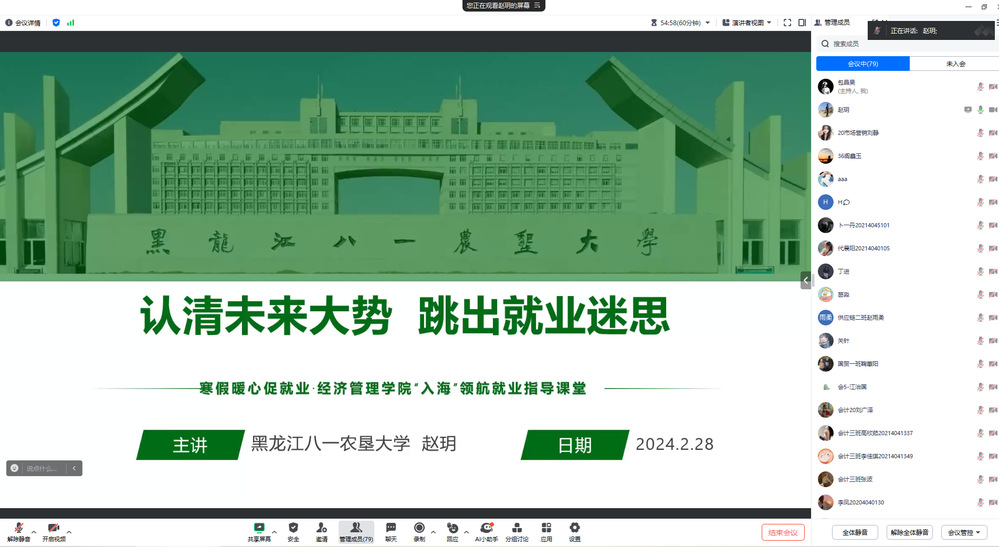 组织学生观看“生涯第一课——看见生涯 预见未来”就业指导专题直播课,帮助学生认识到职业规划的重要性和实用性,掌握职业生涯规划的方法和技能,使学生清晰地认识自我和环境,立足当下,展望未来,为自己的职业生涯绘制一幅美好的蓝图。