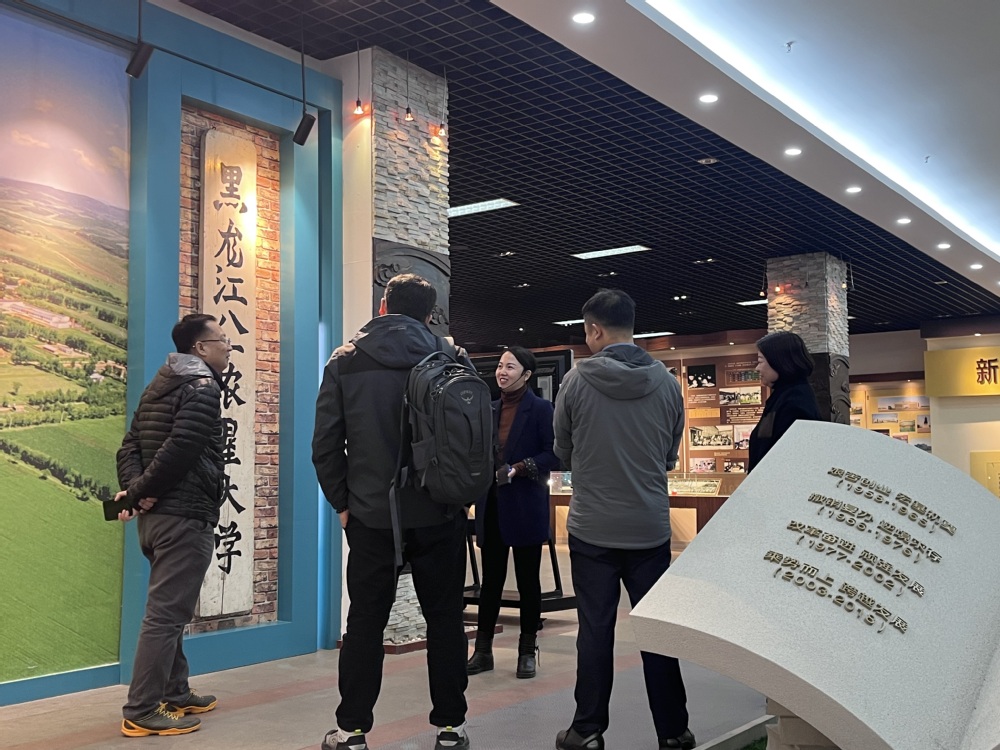 会后,学院领导陪同银城生活服务有限公司副总裁蒋祖柏一行参观了校史纪念馆及北大荒精神展示馆。