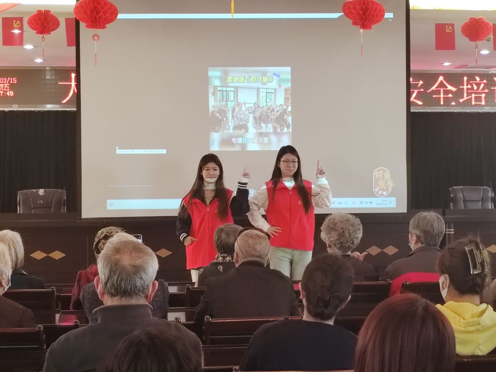 宣讲结束后,志愿者现场为老人们表演防诈骗“三句半”和手势舞,通过老人们喜闻乐见的文艺节目的形式普及防诈骗知识,进一步提高老人们捂好“钱袋子”、守好“养老钱”的意识。