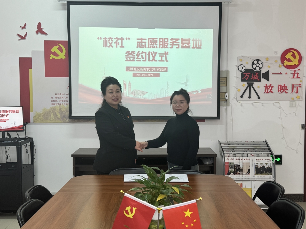 为构建校社共建的良好教育格局,促进校社资源共享、优势互补,4月2日,yl6809永利官网与黎明街道万城社区签订志愿服务基地共驻共建协议,万城社区党总支书记王世君及社区工作人员、yl6809永利官网青年志愿者协会指导教师金馨悦及学生志愿者代表参加签约仪式。