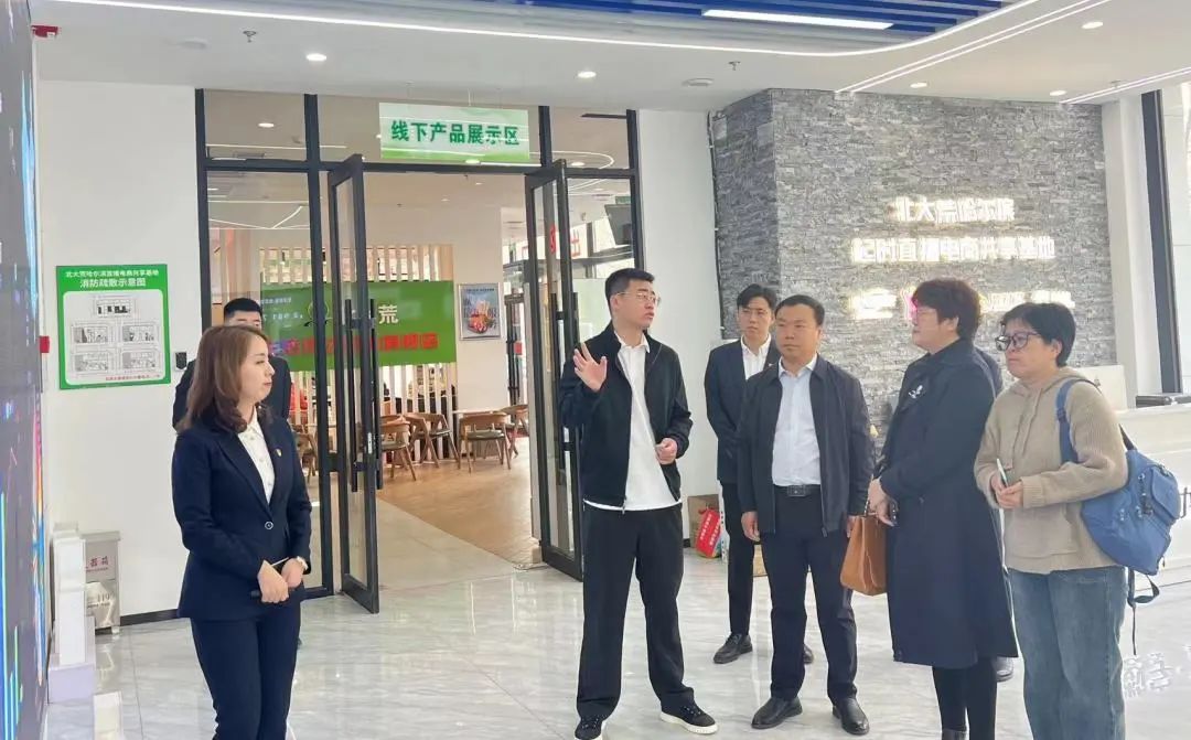 随后,考察组参观了北大荒哈尔滨直播电商共享基地,对直播基地的大数据展示中心、数字虚拟人建设、全品类直播间、直播一体机等功能展示区域进行了实地考察。该直播基地在电商板块、政务板块、本地生活业务等方面均取得了较好成效,成为企业数字化转型新的经济增长点。