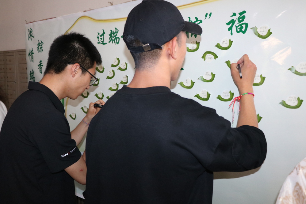 浓情寄端午,安康传祝福,根根丝线连,切切情意牵。老师们为来到活动现场的每位同学系五彩绳、挂香囊,同学们在创意展板和书签上互寄端午安康。