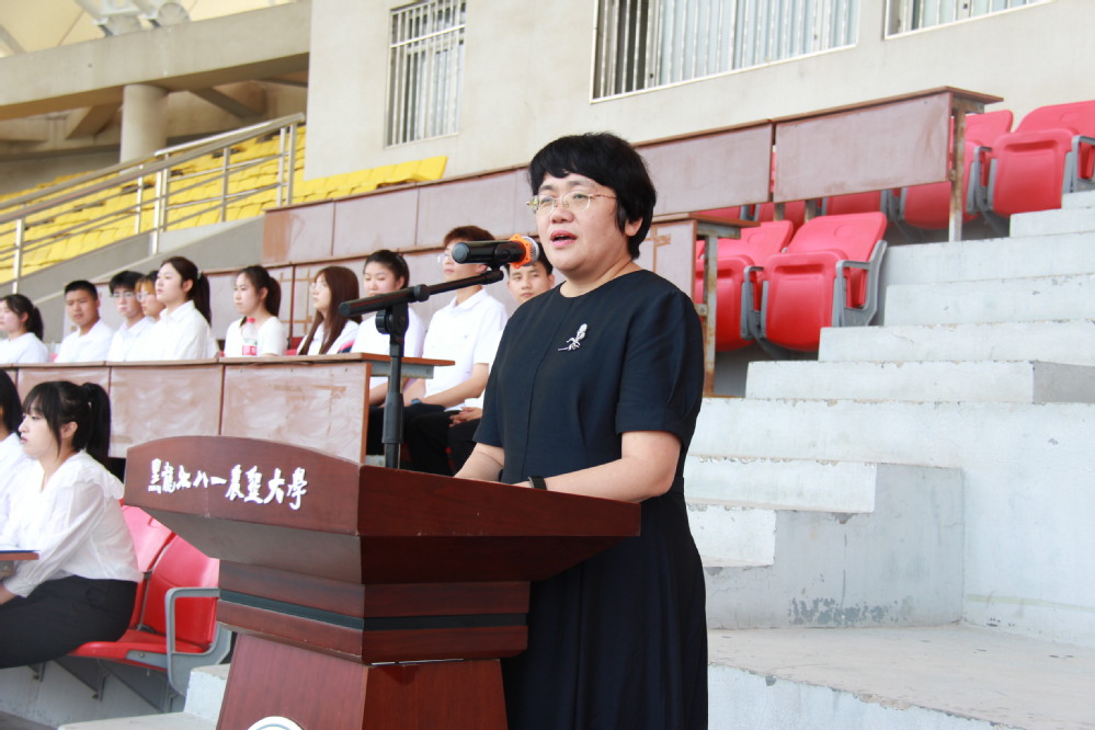 会计系教师李秀丽教授作为教师代表发言,勉励同学们正心明德、志存高远、业精于勤、自律自强,并代表全体教师郑重承诺,愿以师之名、为师之实,以学识、担当和责任为同学们插上腾飞的翅膀,搭起进步的阶梯。