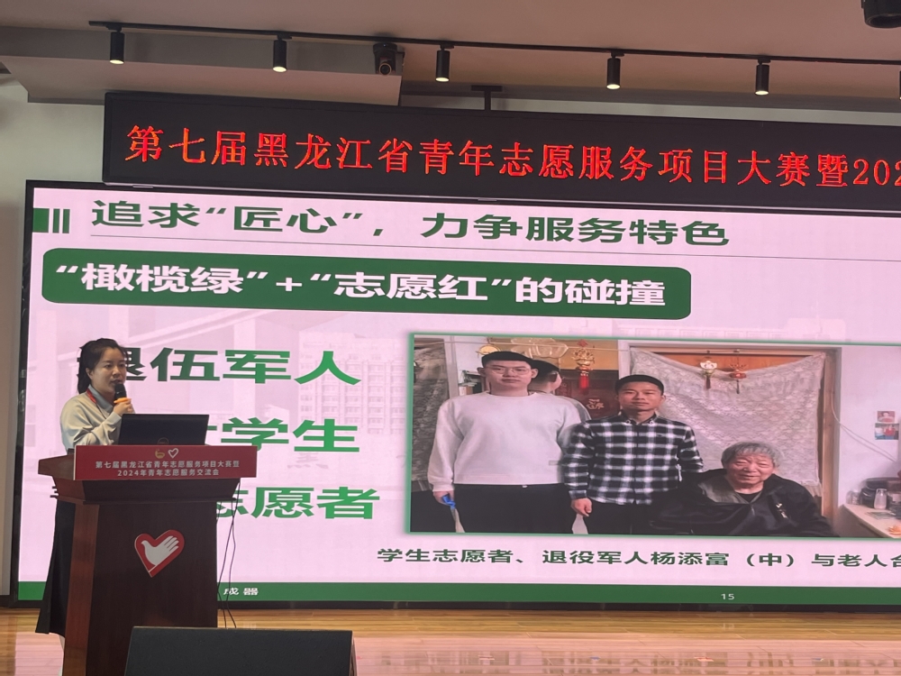 近日,由团省委权益和社会联络部举办的第七届黑龙江省青年志愿服务项目大赛决赛在哈尔滨举行,全省共269个志愿服务项目参赛。经过初评、终评、成绩复核等环节,我院“金晖行动”志愿服务项目获第七届黑龙江省青年志愿服务项目大赛金奖。