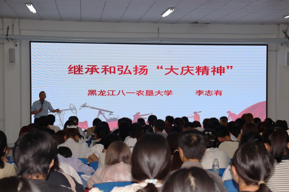 李志有为同学们讲授大学第一堂思政课,课程共分为“学习党的二十大精神 厚植爱党爱国爱社会主义情怀”“继承和弘扬‘大庆精神’”两个部分。在第一部分,李志有从大会主题、三个务必、十年来三件大事、跳出历史周期率的第二个答案等方面详细讲解党的二十大报告中的新观点、新论断、新思想,与同学们深入交流探讨,表达了对同学们的殷切期望,鼓励同学们以强大的奋斗动力和成长力量开启大学生活的崭新篇章。在第二部分,李志有从大庆精神产生的背景、大庆精神的主要内涵、新时代践行大庆精神三个方面展开讲解,回顾了大庆会战时期的峥嵘岁月和高质量发展的历程和成就,让同学们为自己学习生活在这座英雄城市而感到骄傲,引导同学们更好地传承和发扬大庆精神。