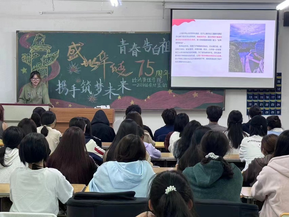 学院特别策划制作歌曲联唱作品《我爱你中国》,经管学子在校园的不同场景,挥舞手中的五星红旗,温暖唱响《我爱你中国》,用最热烈欢快的方式向伟大的祖国深情告白,为祖国75周年华诞献礼,以青春之名许下报国之志,让青春在奋斗中闪耀光芒。