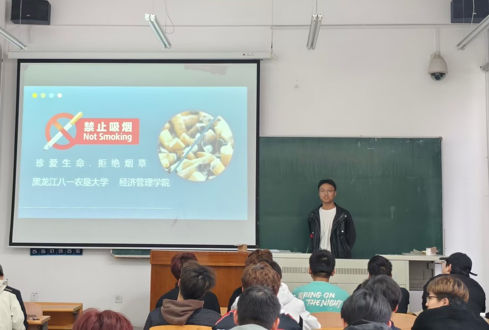会上集中观看了禁烟控烟宣传视频,乔辰军领学《黑龙江八一农垦大学学生禁烟管理条例》以生动的案例和详实的数据列举吸烟对自己及他人身体健康、公共场所环境卫生的种种危害,带领同学们诵读《戒烟歌》,通过警示教育增强学生安全意识,筑牢学生安全底线。