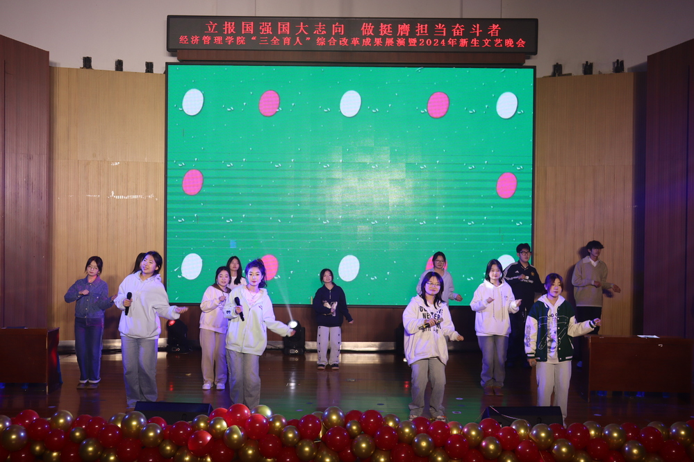 晚会分为“赓续笃行扬‘新’帆”“激扬青春展‘新’颖”“挺膺担当绘‘新’篇”三个篇章,聚焦“三全育人、五育融通、师生融乐、全面发展”的奋斗姿态和盎然光景。一曲《大中国》气势磅礴、振奋人心,奠定激昂奋进的红色主基调;退伍大学生士兵的情景表演《祖国不会忘记》致敬卫国戍边英雄,“清澈的爱,只为中国”的赤子情怀动人心扉,“当祖国和人民需要我时,若有战,召必回”的铮铮誓言响彻场馆,赢得了现场观众的深切共鸣。《像你这样的朋友》《小镇姑娘》律动飞扬、直击心灵,传递出对青春真挚友谊的珍视和追求梦想永不落的勇气。舞蹈《芳华》再现北大荒人以灿然芳华擎帜荒原、点燃火种的壮丽诗篇,展现出学院用北大荒精神铸魂育人,追寻拓荒者足迹、点亮芳华青春的教育理念;《这世界那么多人》《少年中国说》展示新时代北大荒精神传承人的新面貌新风尚,表达出经管学子为国家而奋斗、为理想而前行,不负时代、不负人民的坚定决心。晚会在《美丽中国》充满朝气深情的词曲音画中落下帷幕,唱响对祖国的无限热爱,激励师生锚定卓越目标,追求非凡品质,激发无限潜能,凝心聚智、再启新程。